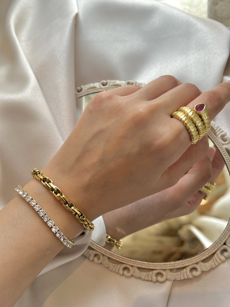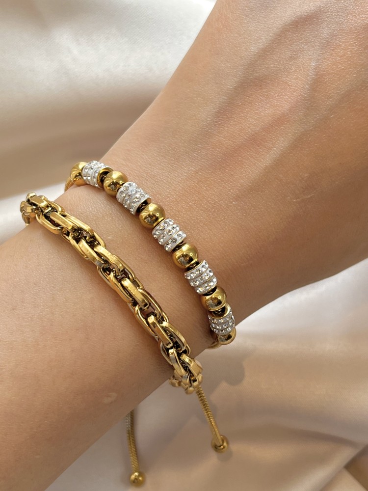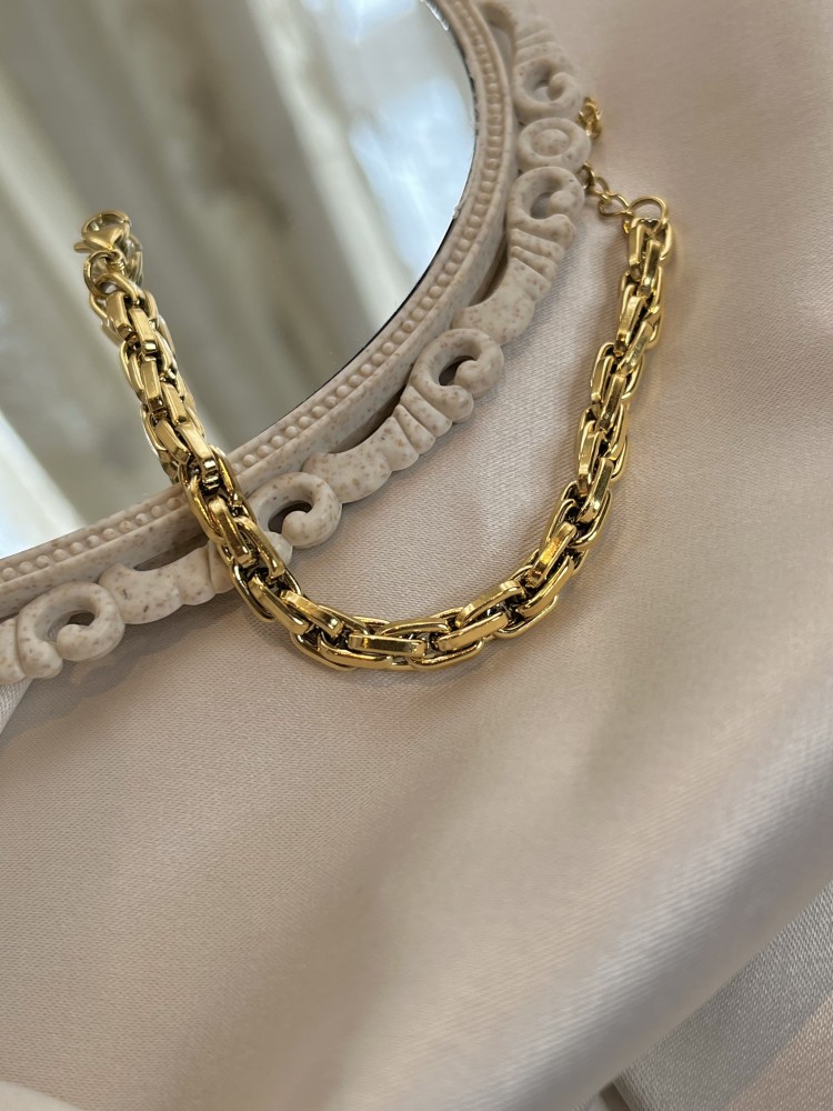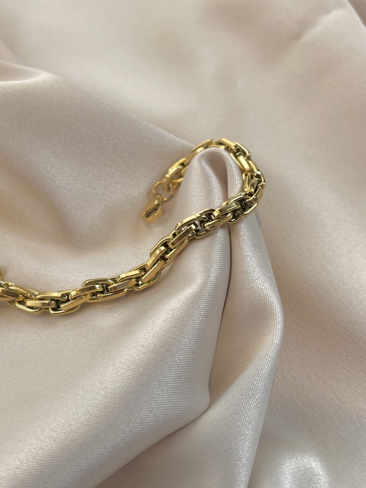 اسواره جنزير متشابكة مصنوعة من المعدن المقاوم للصدأ و الماء مطلية ذهب 18 قيراط PVD وهذا يعني يستمر اللون لفترة طويلة حسب إستخدامك