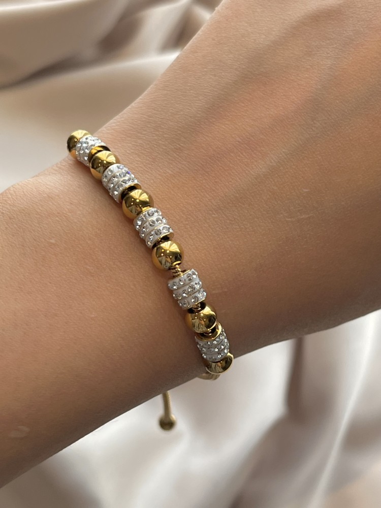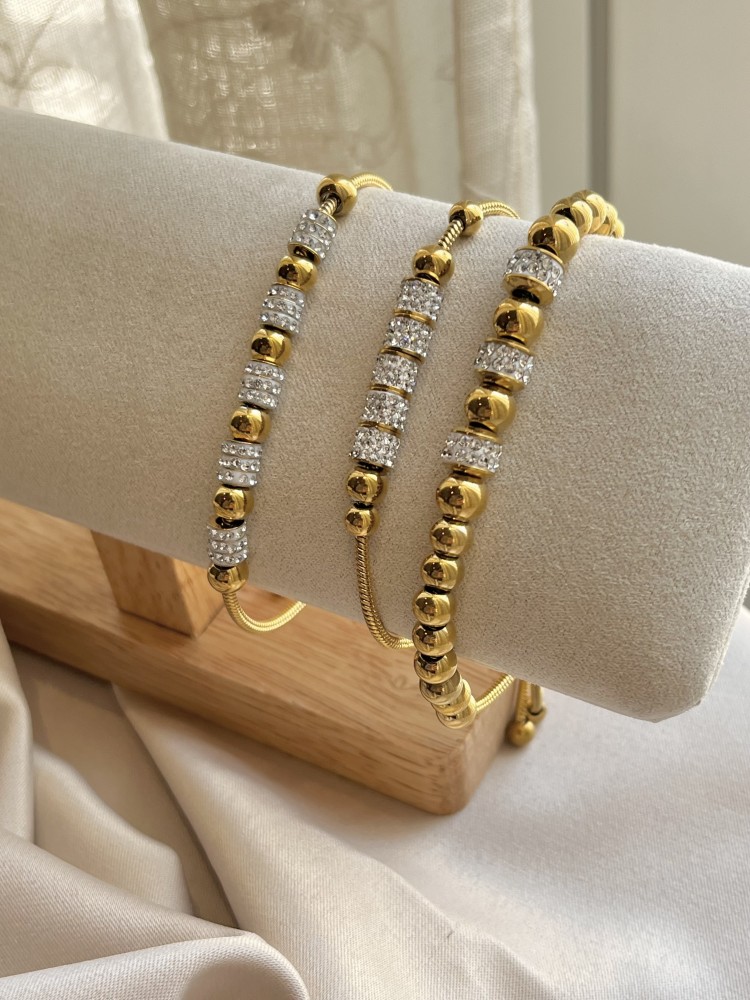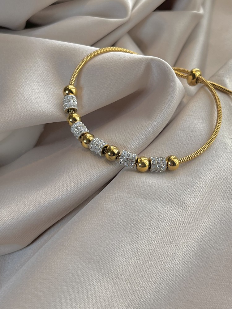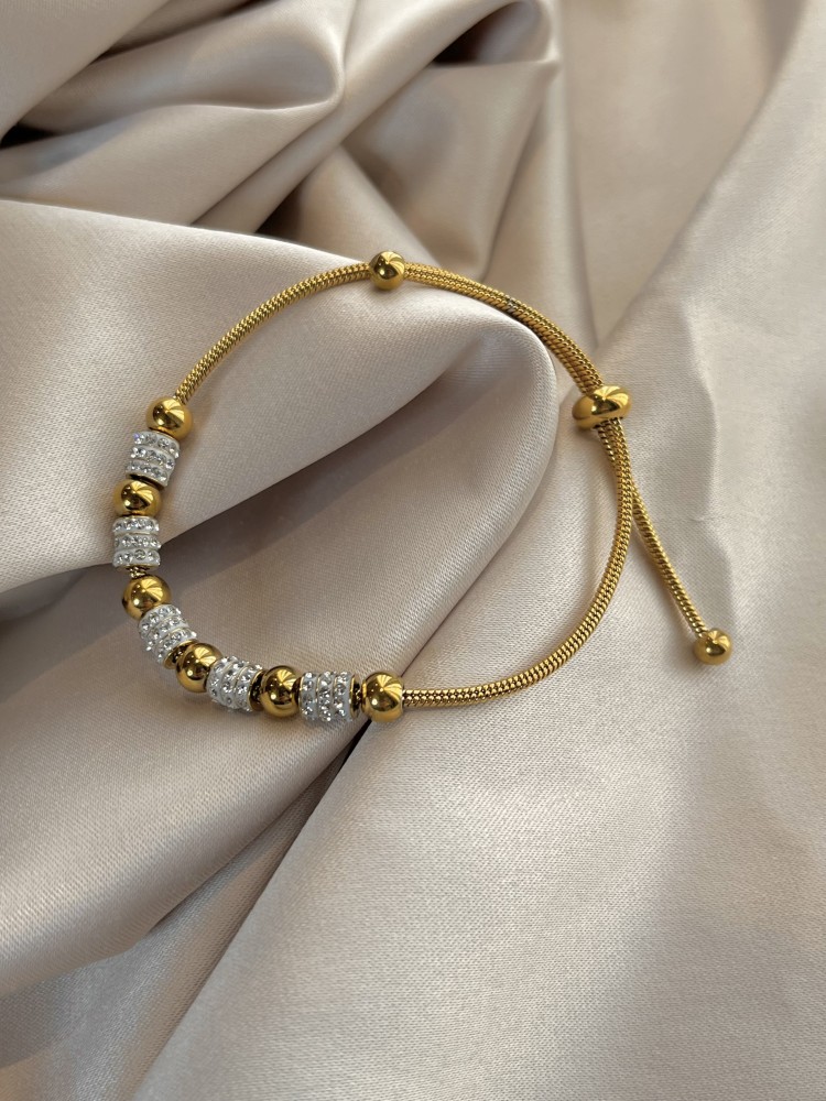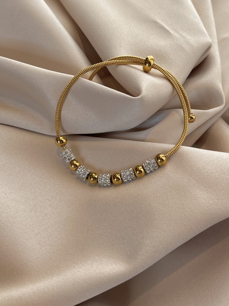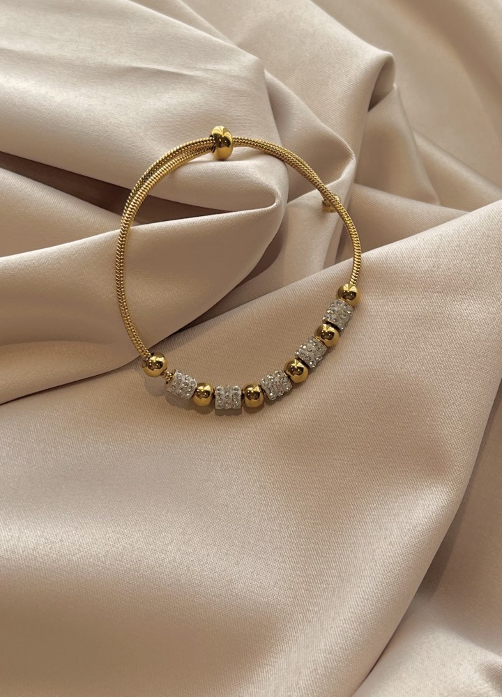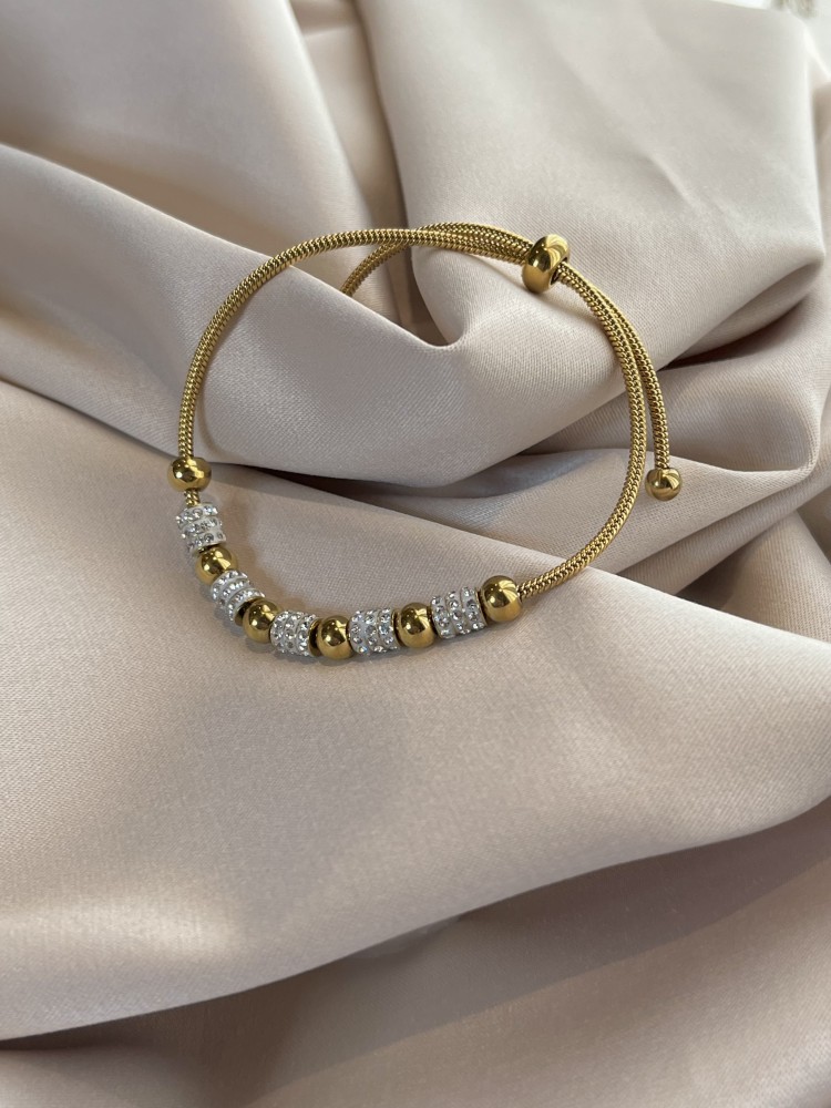 ثعبان عصرية انيقة مزينة بحبات كور و زريكون مصنوعة من المعدن المقاوم للصدأ و الماء و مطلية ذهب 18 قيراط ،PVD و ذلك يعني يستمر اللون لفترة طويلة حسب استخدامك