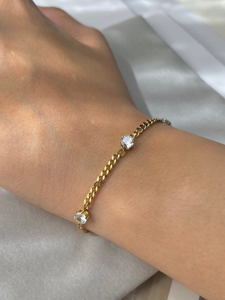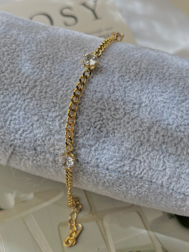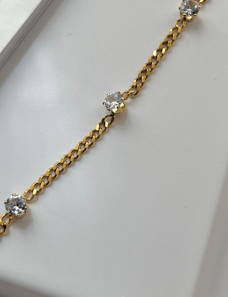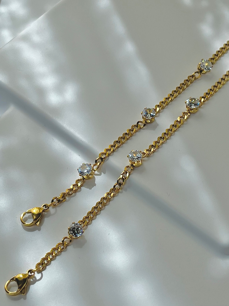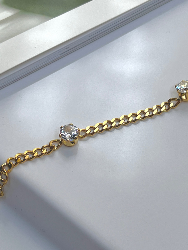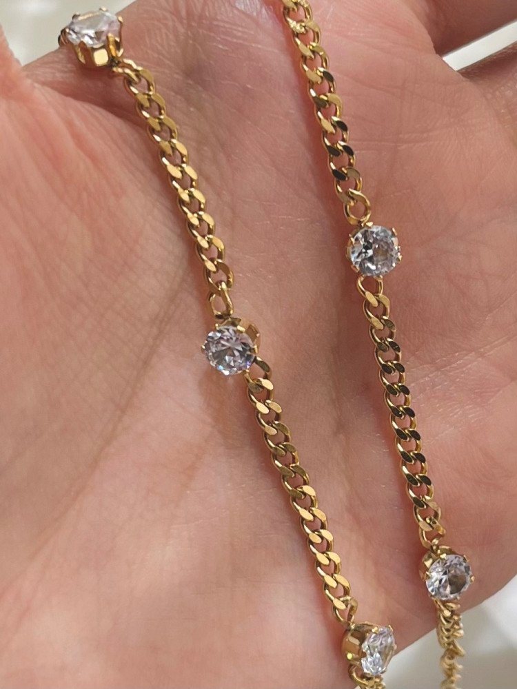اسوره جنزير بحبات زريكون بارزة مصنوعة من المعدن المقاوم للصدأ والماء ومطلية ذهب
