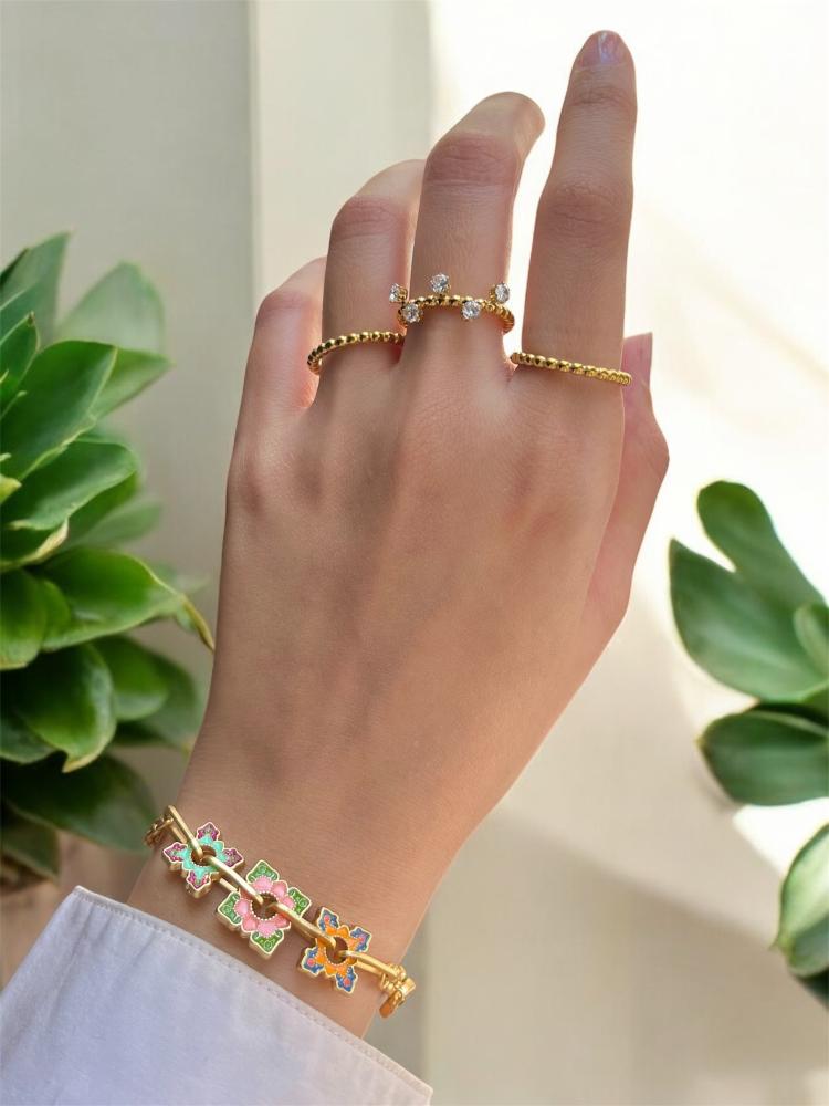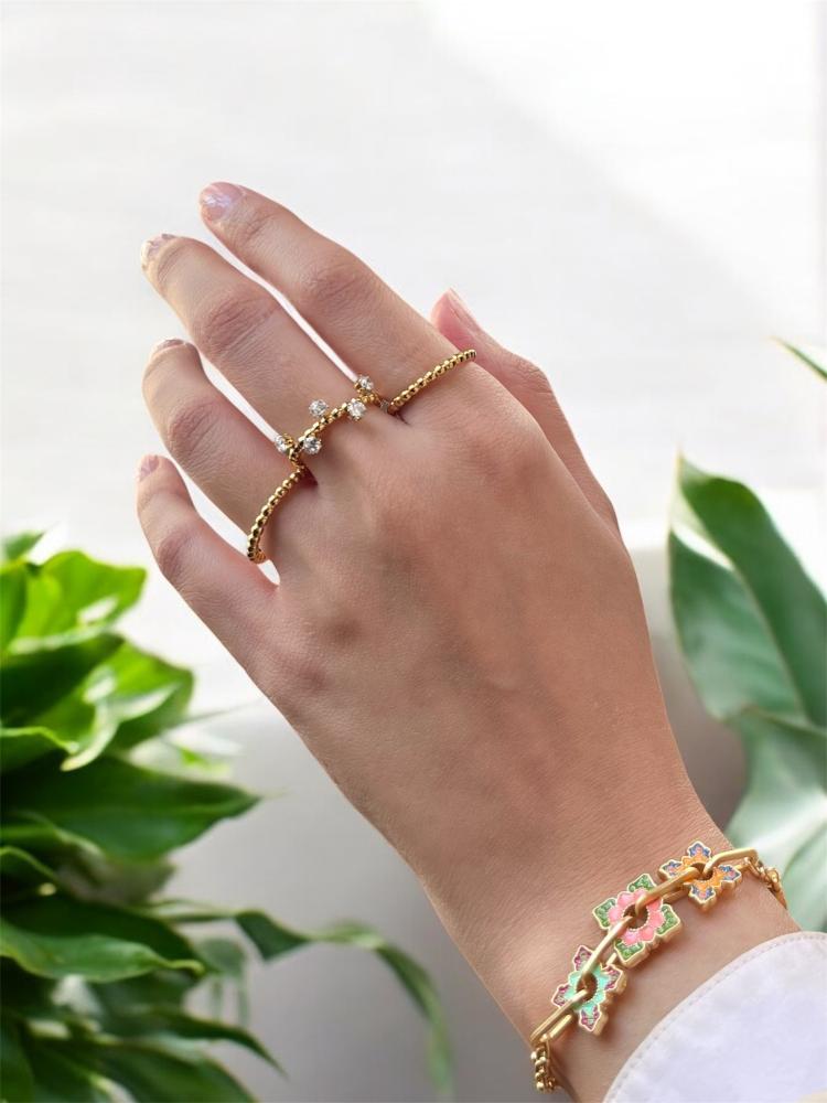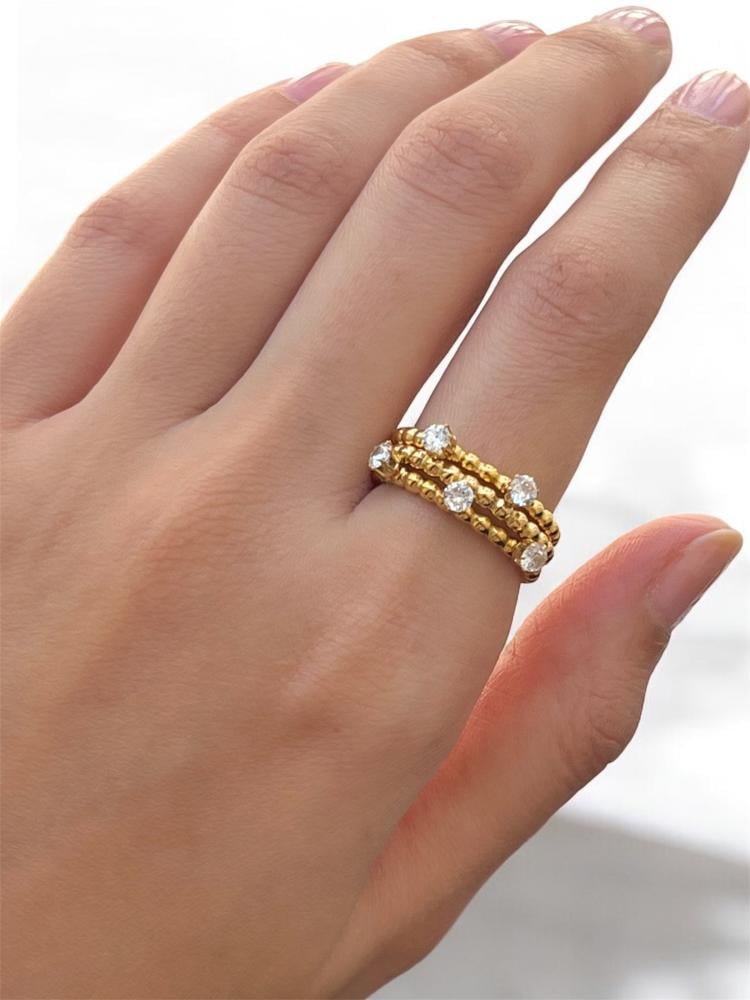 إذا كنتِ تبحثي عن شيء بسيط و عملي خاتم ثري هو الخيار الأفضل. يتميز بتصميمه العصري الذي يجمع بين البساطة والابتكار مكون من 3 قطع تقدري تلبسينهم مع بعض أو كل قطعة على حدة حسب رغبتك. مصمم من الستانلس ستيل المقاوم للصدأ والماء، ومطلي بالذهب عيار 18 كي يدوم طويلاً معكِ.تصميمه سهل ومرن. مع خاتم ثري، تستطيع أن تختاري وتنسقي القطع بكل حرية على ذوقك!
