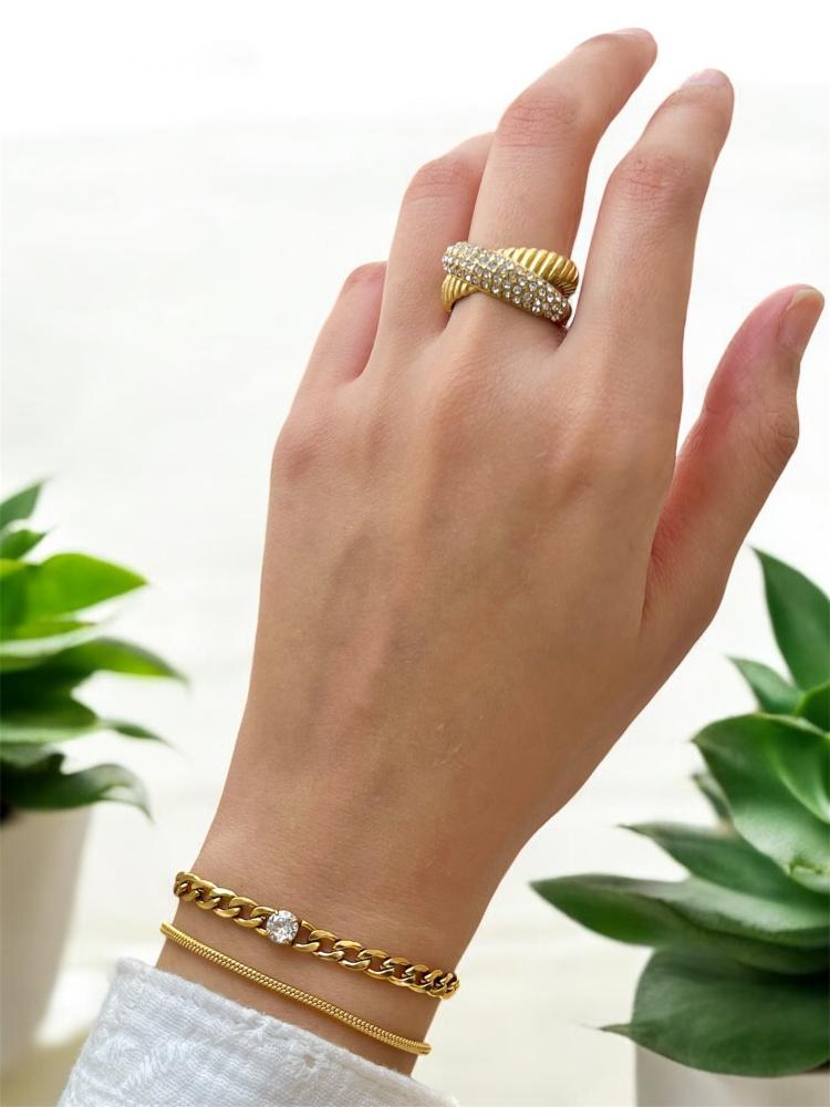 خاتم كروس المصنوع من معدن الستانلس ستيل يتميز بتصميم أنيق وعصري يناسب كافة الإطلالات. بفضل مقاومته للصدأ والماء، يُعد اختياراً مثالياً لمن يبحث عن الإكسسوارات المتينة التي تدوم طويلاً. مطلي بالذهب عيار 18 باستخدام تقنية PVD، ليحافظ على بريقه ويضفي لمسة أنيقة تناسب إطلالاتك اليومية أو مناسباتك الخاصة. قطعة عملية بتصميم فريد تضيف إلى أسلوبك لمسة من التميز.