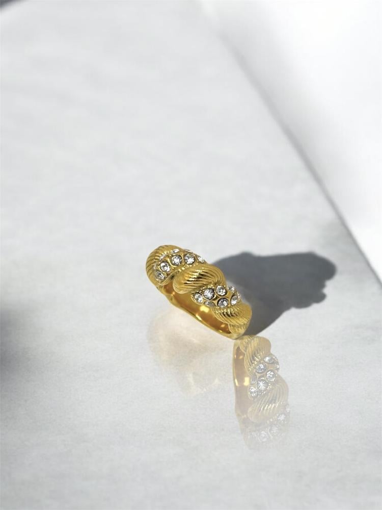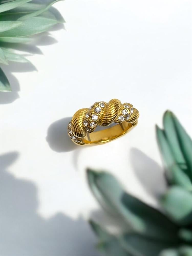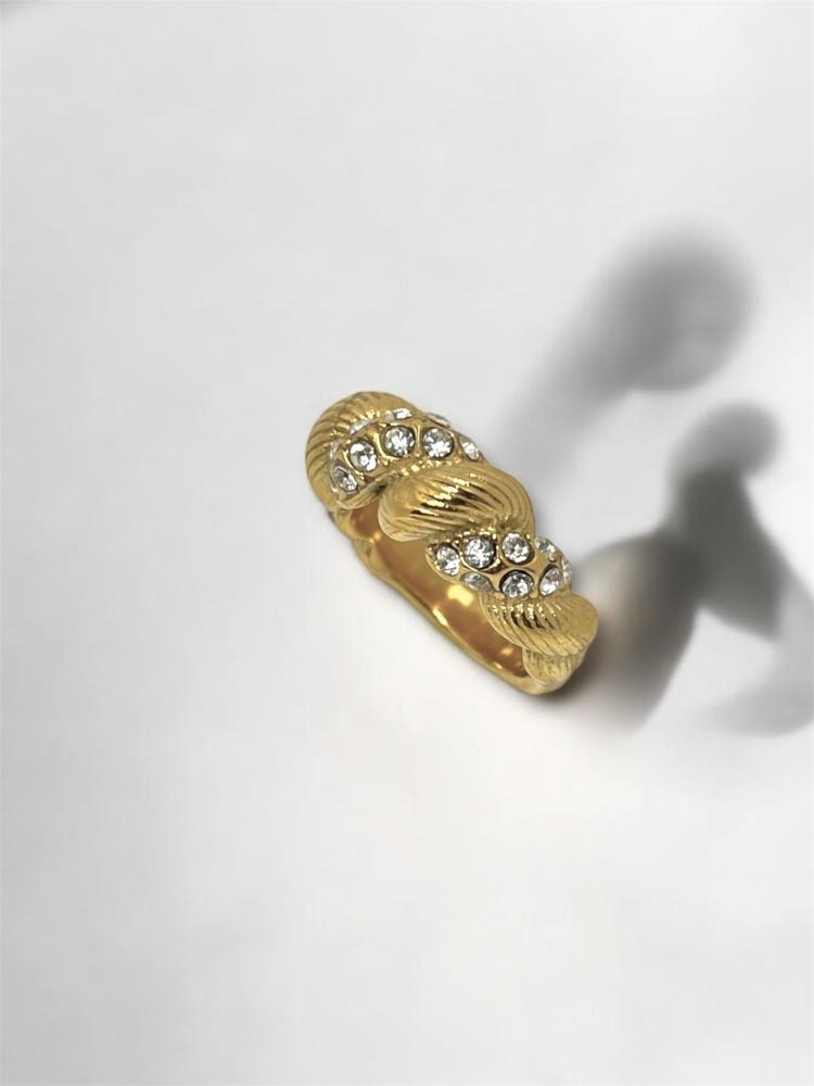 خاتم مبروم بأحجار الزريكون هو اختيارك المثالي إذا كنتِ تبحثين عن شيء فريد يميز إطلالتك. تصميمه الجديد بأشكاله المبرومة يضيف لمسة جمالية مميزة، مزين بحجارة زريكون لامعة تضفي عليه بريقاً لافتاً. الخاتم بسيط ولكن في نفس الوقت ملفت للنظر، ومناسب تماماً لإطلالاتك اليومية أو حتى للمناسبات الخاصة. راح تكونين دائماً بأناقة لافتة وبلمسة مميزة!