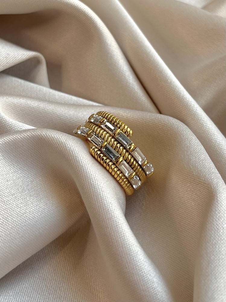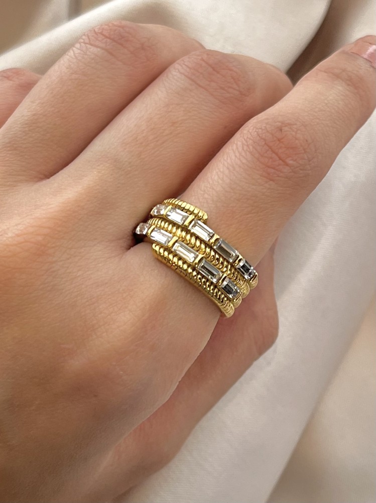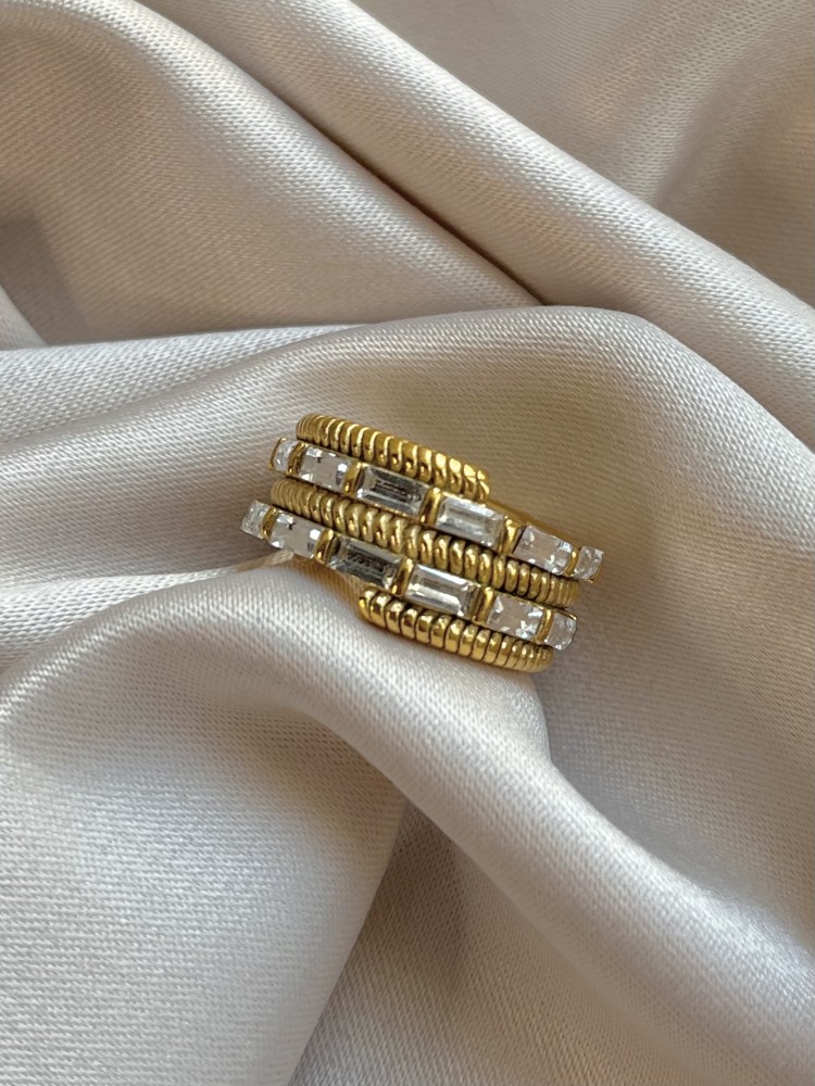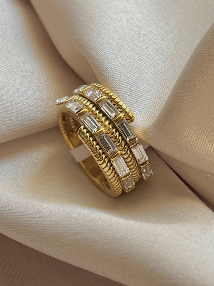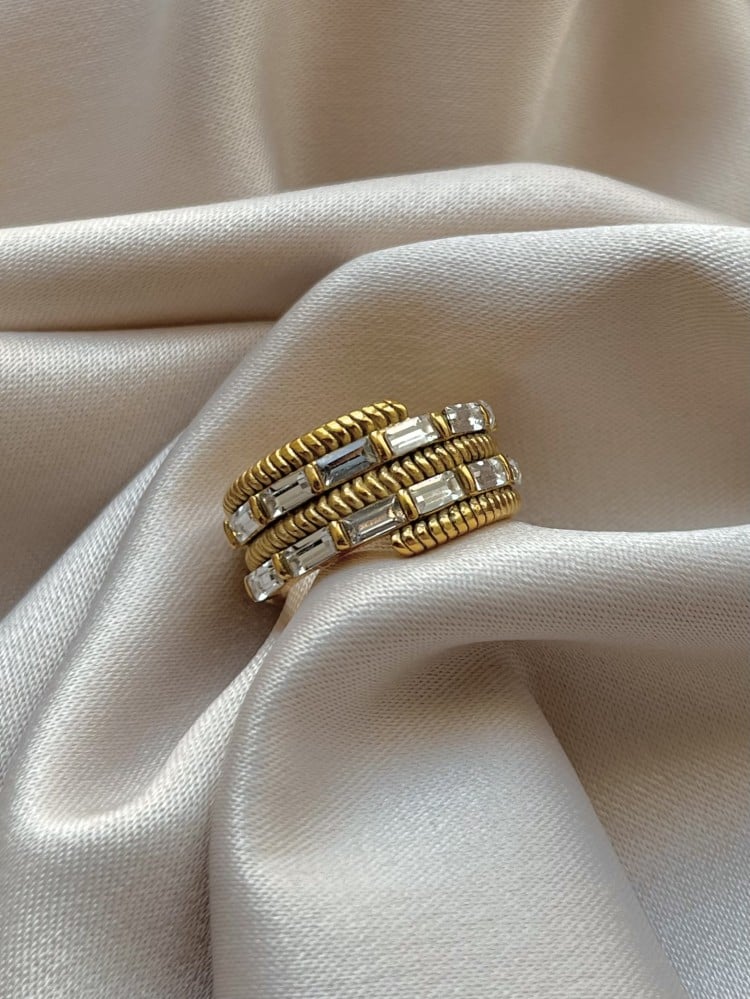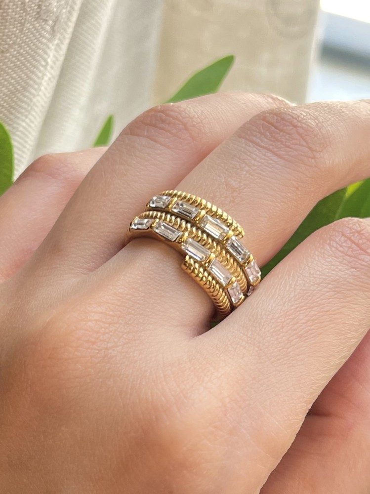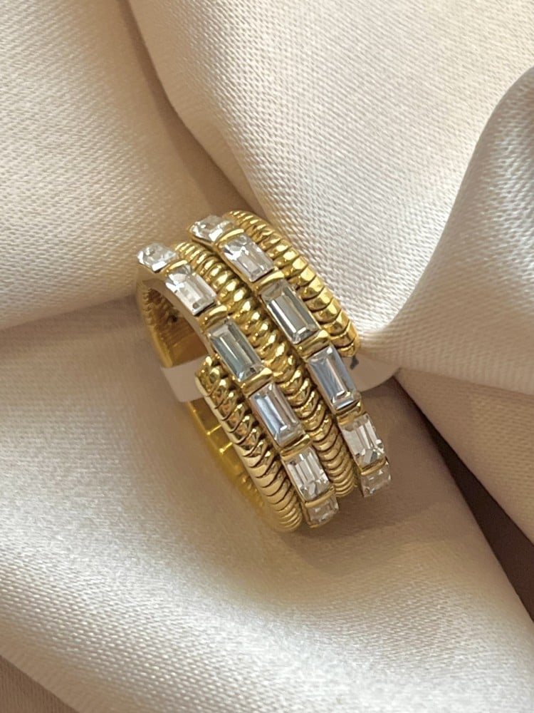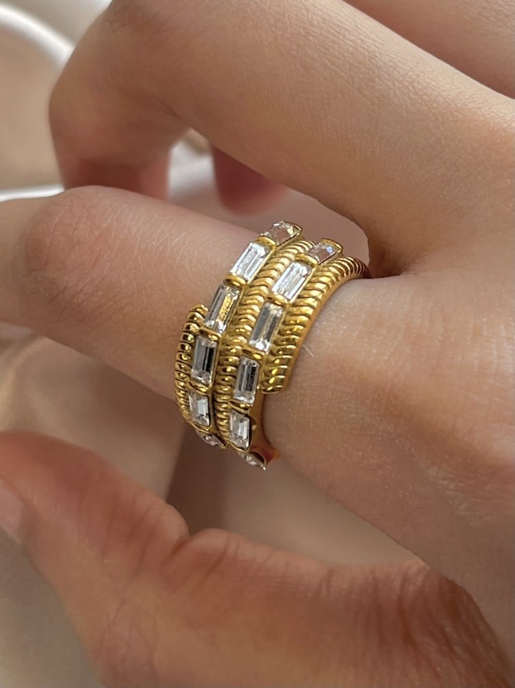 خاتم مزين بزريكون ، مصنوع من المعدن المقاوم للصدأ و الماء ومطلي ذهب (PVD(18K وهذا يعني يستمر اللون لفترة طويلة حسب استخدامك