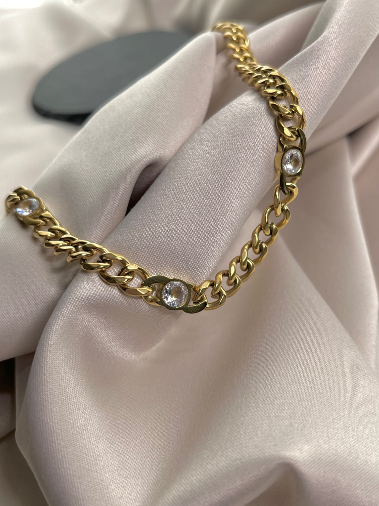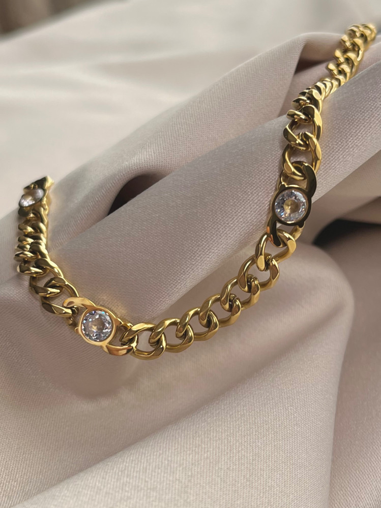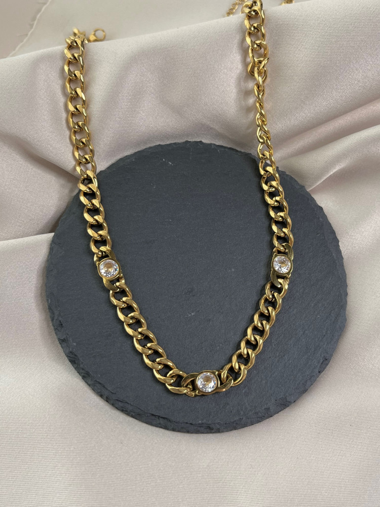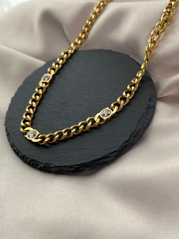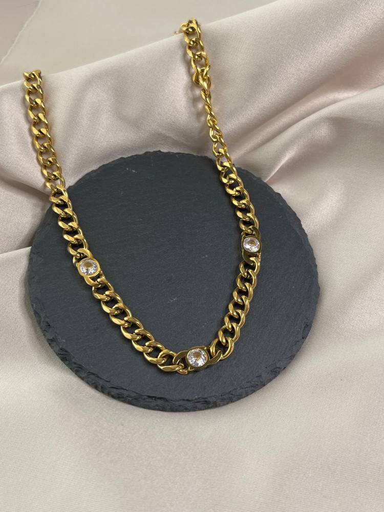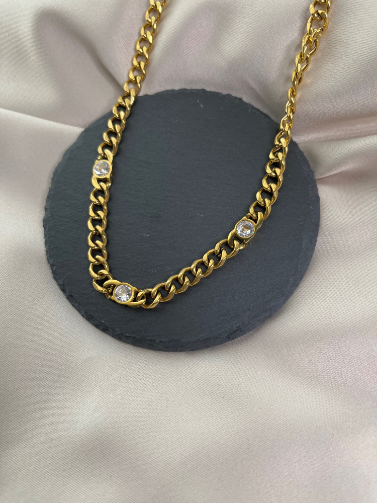 سلسلة جنزير مزينة بزريكون مصنوعة من المعدن المقاوم للصدأ و الماء مطلية ذهب 18K