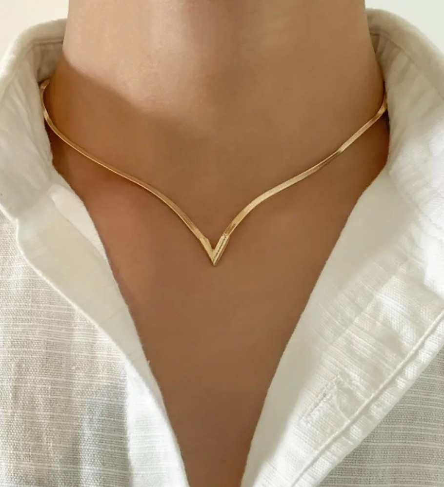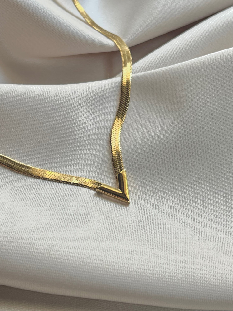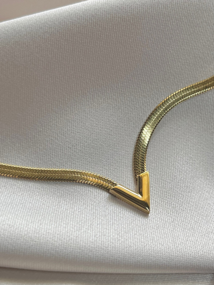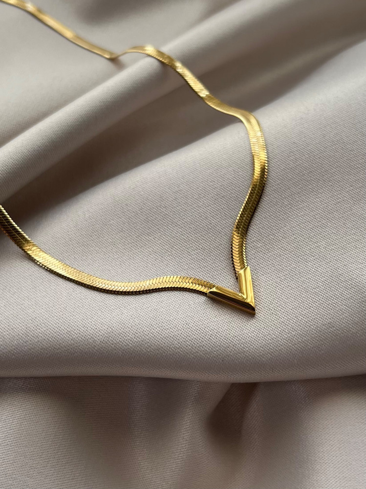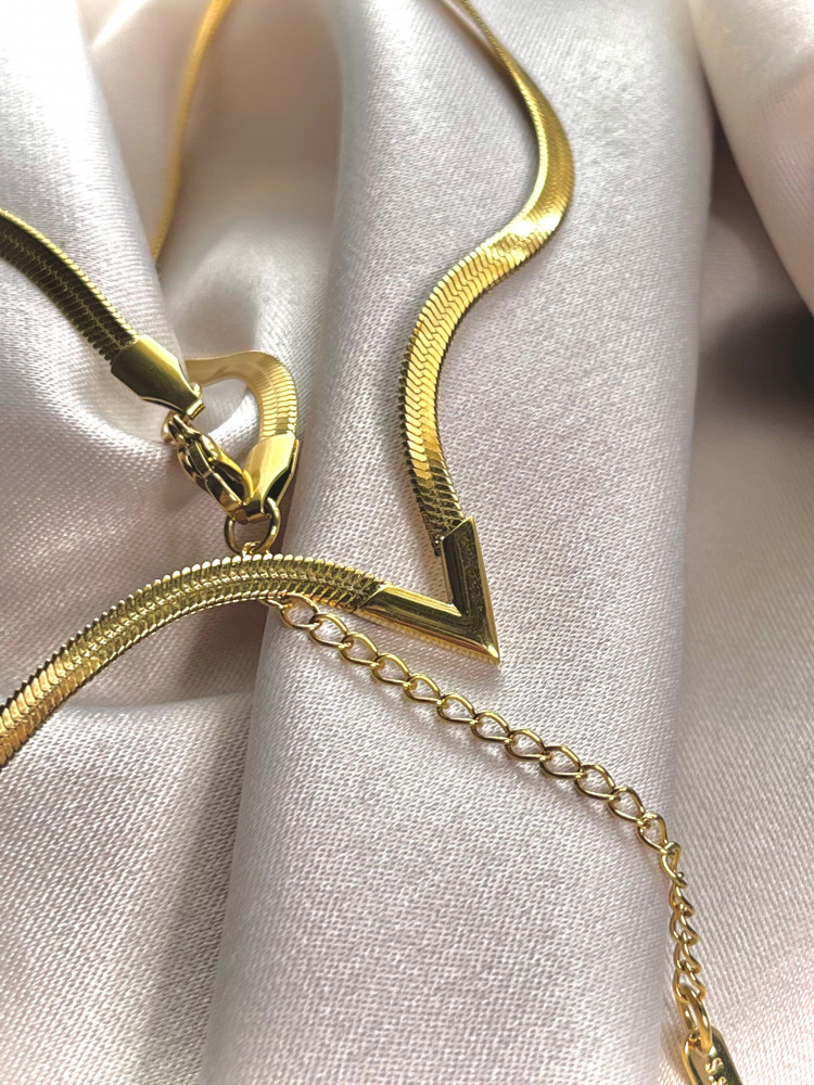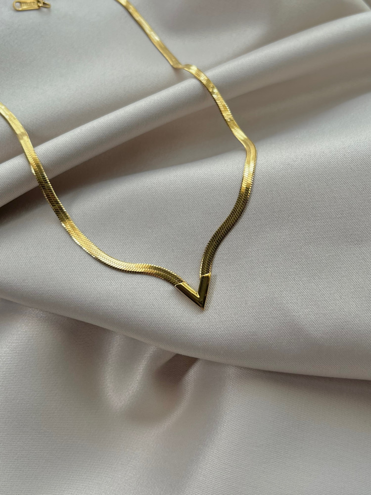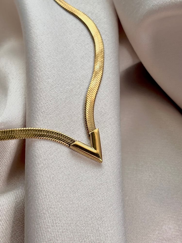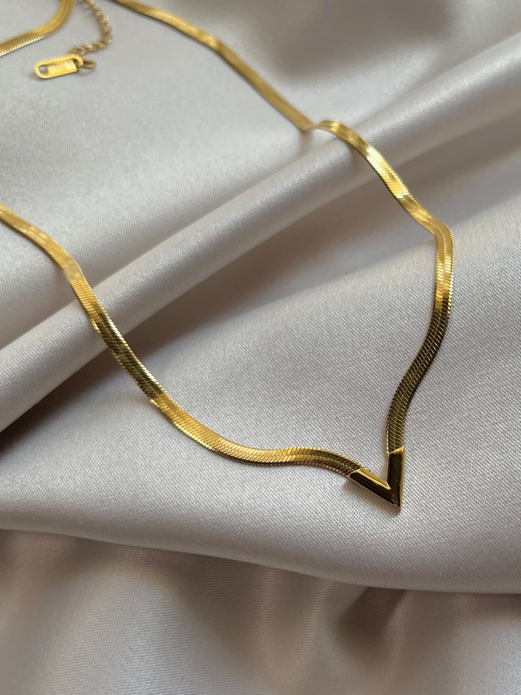 سلسلة فلات V ذهبي ناعمة مصنوعة من المعدن المقاوم للصدأ و الماء ومطلية ذهب PVD)18K)